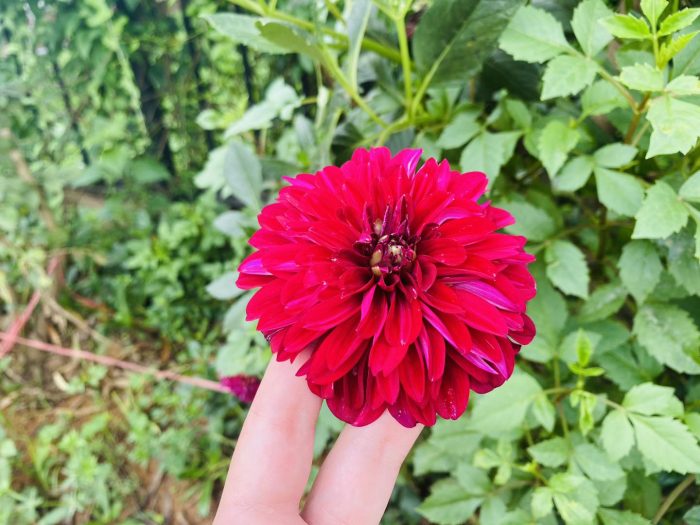 Hoa thược dược đỏ thắm khoe sắc dù mưa hay nắng. Dù không phải là mùa hoa nhưng vẫn đượm sắc cho du khách check in thoải mái.