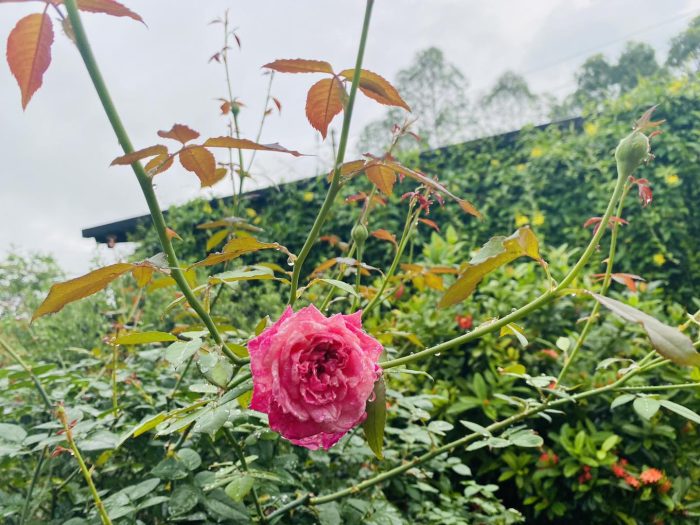 Rực rỡ khắp Bamboo là những cành hồng đỏ màu sắc, ở Bamboo có hoa hồng cổ sapa, hồng cổ huế, hồng điều cổ, bạch ho,…