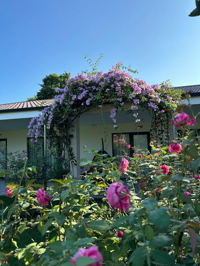 - Tiện nghi: bao gồm miễn phí ăn sáng, nước đóng chai, cà phê, Wifi, điều hòa 2 chiều, tắm khoáng nóng bể chung và xe đạp.