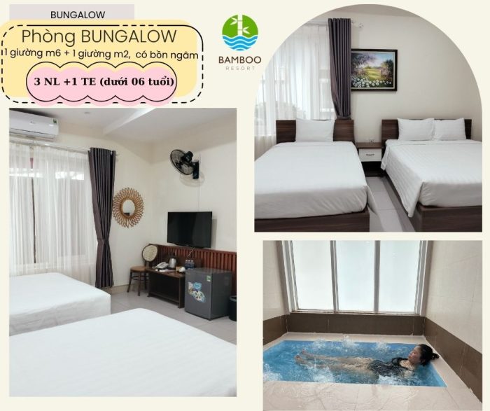 Bạn sẽ được thức dậy trong ánh nắng dịu dàng xuyên qua tán tre, nghe tiếng chim hót, và hít thở không khí trong lành. Từ bungalow riêng biệt đến phòng gia đình ấm cúng, mỗi thiết kế tại Bamboo Resort đều mang cảm giác gần gũi, thân thiện nhưng vẫn đầy đủ tiện nghi.